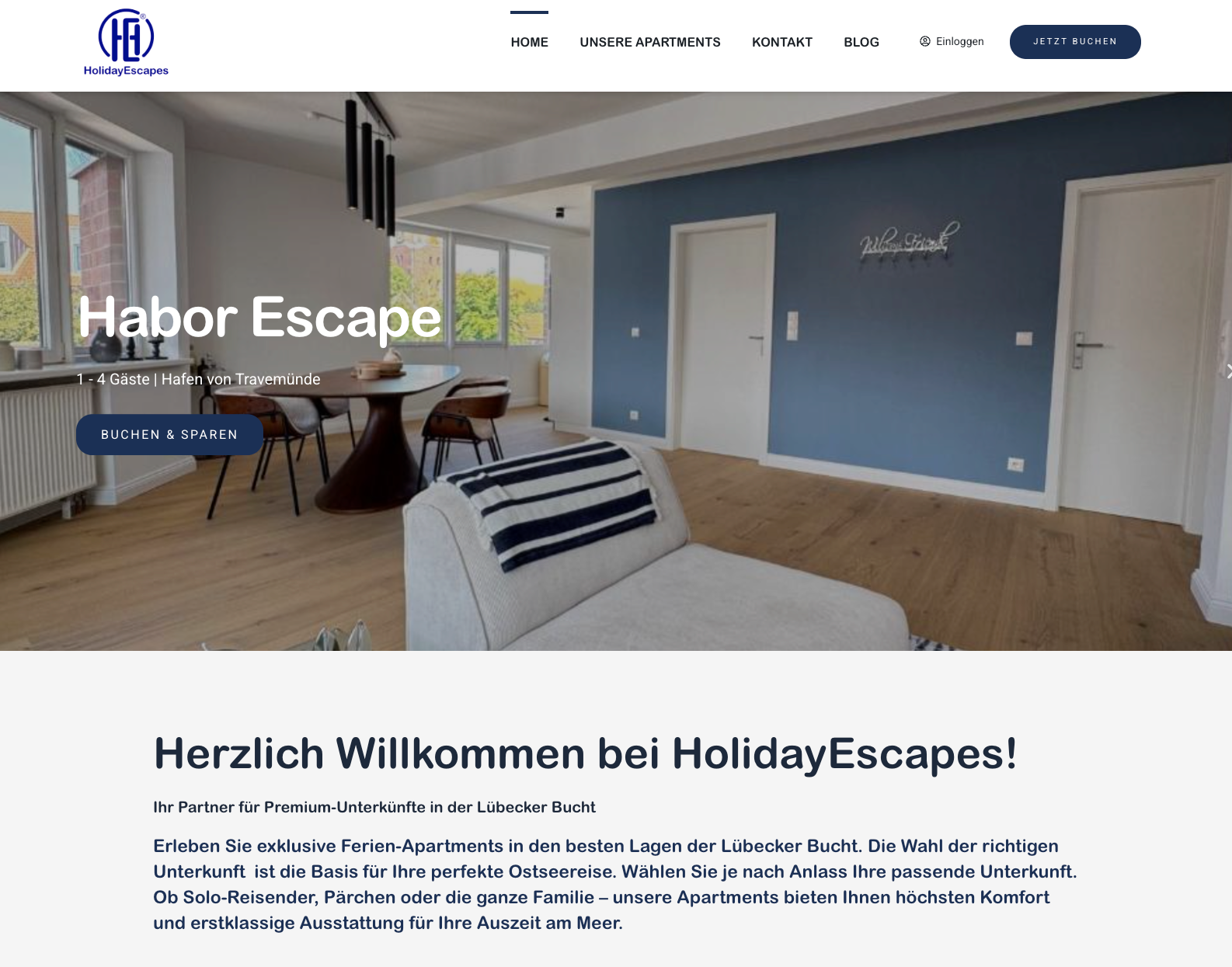 Für HolidayEscapes haben wir eine komplette Hotel-/Ferienwohnungsseite aufgebaut – optimiert auf direkte Buchungen ohne Plattformen.
